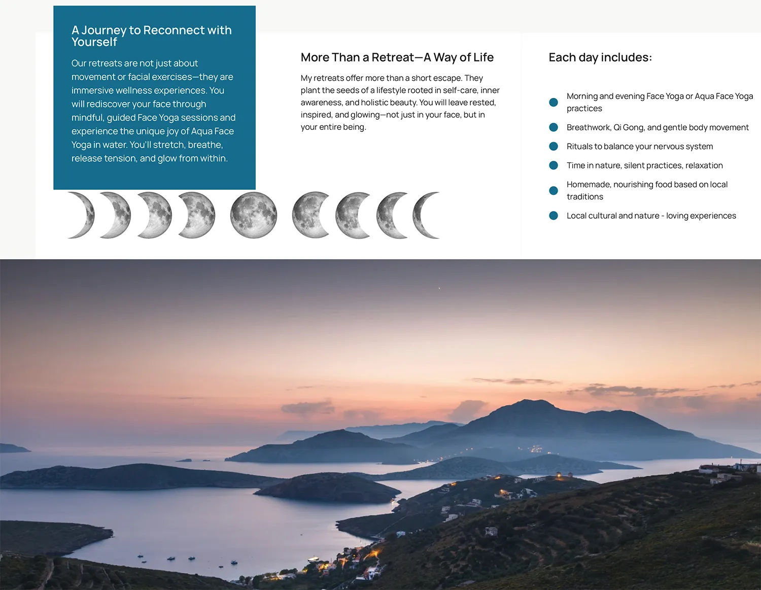 Services, workshops, and retreats are organised through a clear content architecture that allows visitors to easily explore the different offerings.